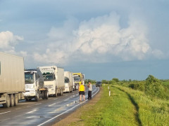 На федеральной трассе возле Екатеринославки водители оказались в двухчасовой пробке