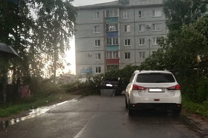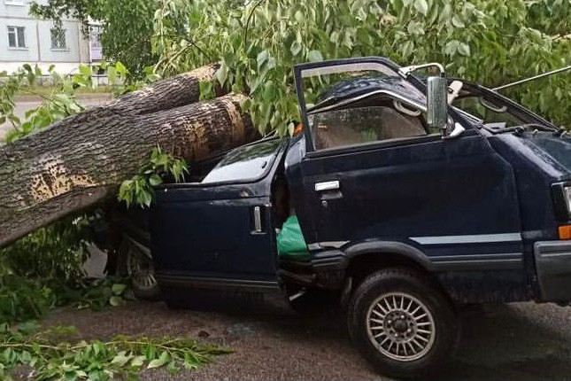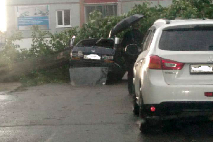 В Архаре в воскресенье, 10 июля, ветер повалил дерево на автомобиль. К счастью, обошлось без жертв.