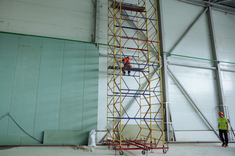 В новом ФОКе будет большой универсальный зал с площадками для баскетбола и волейбола, уже закуплено оборудование для настольного тенниса, откроют и отдельный зал для танцев. Как сообщил подрядчик, сейчас на объекте работают порядка 30 человек, до конца месяца группу рабочих увеличат до сорока. Также планируется работать и в ночную смену.