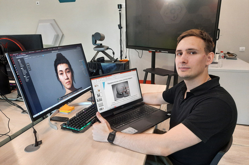 — По первому образованию я бакалавр информационных систем и технологий. Защитил диплом в 2020-м в АмГУ и сразу же поступил в магистратуру, — рассказывает Роман. — Мое направление — «программная инженерия». Это довольно специфическая отрасль разработки. Параллельно с магистратурой преподаю в VR-лаборатории детского технопарка. Учу детей создавать приложения виртуальной, дополненной и смешанной реальности. Поэтому, когда мой научный руководитель Илья Евгеньевич Еремин предложил тему магистерской диссертации «Компьютерная реконструкция внешнего облика коренных народов Приамурья», я сразу решил таким образом выстроить исследование, чтобы его результаты могли помочь в исследованиях и проектах, в том числе — детей.