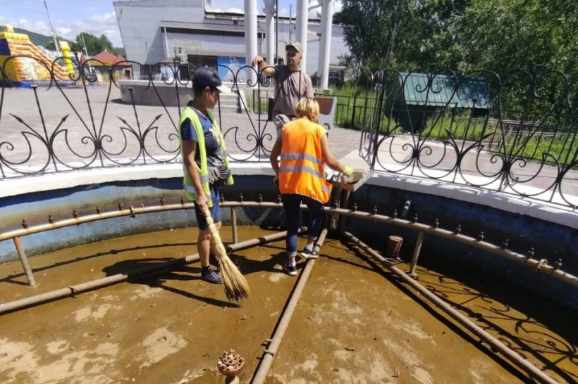 В Зее почистили единственный в городе фонтан