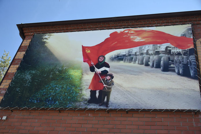 Предприниматель разместил его на магазине «Любимый»Огромный плакат с бабушкой и мальчиком-танкистом под красным флагом появился и в Свободном. Его разместили на местном магазине «Любимый» по инициативе его владельца.