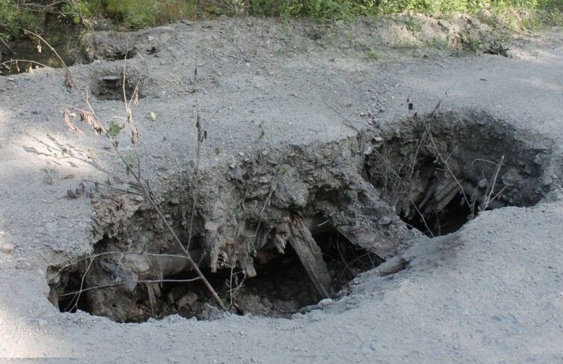 На 30-м километре трассы Зея — Снежногорский на днях образовался провал в настиле деревянной трубы. Об этом сообщило местное издание «Зейские вести сегодня». Водители обозначили его ветками, чтобы другие участники движения не попали в ловушку, и на свой страх и риск преодолевают дыры.