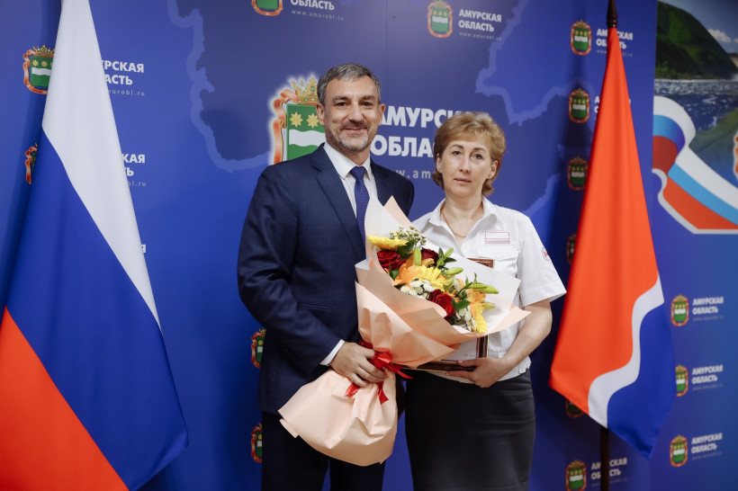 Губернатор вручил благодарственные письма машинисту-инструктору локомотивных бригад эксплуатационного локомотивного депо Белогорск Забайкальский дирекции тяги Александру Аноприенко, оператору сортировочной горки железнодорожной станции Белогорск Ольге Войтенко, начальнику базы топлива Благовещенск Свободненского отдела материально-технического обеспечения Дмитрию Магаляс, электромеханику Шимановской дистанции сигнализации, централизации и блокировки Борису Хамову.