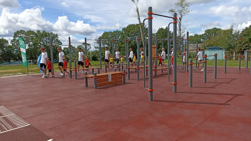 Работы начались в июне: под площадку подготовили основание, установили тренажеры и оборудование, оснастили прорезиненным покрытием. Для спортсменов установили разноуровневые перекладины, брусья, гимнастические скамьи для отжимания, пресса, наклона на гибкость, а также комплексы для прыжков в длину с места, рывка гири, мишени для метания мяча в цель.