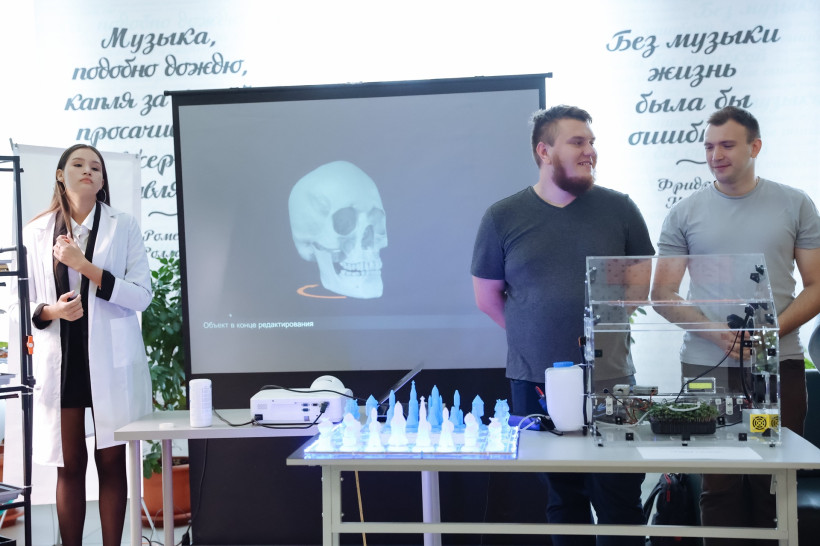 Перед началом официального открытия педагогической конференции губернатор Василий Орлов осмотрел выставку научно-технических разработок школьников и студентов. На выставке учителя и школьники продемонстрировали возможности нового оборудования, которое поступает в образовательные центры, созданные по нацпроекту «Образование», а также представили интересные разработки. Это были 3D модели памятников, сити-ферма с микрозеленью, умная теплица и космические шахматы от детского технопарка «Кванториум-28», модели дронов и роботизированные системы. Также главе области презентовали технологию по восстановлению внешности человека по останкам с использованием виртуальной реальности и нейросетей.