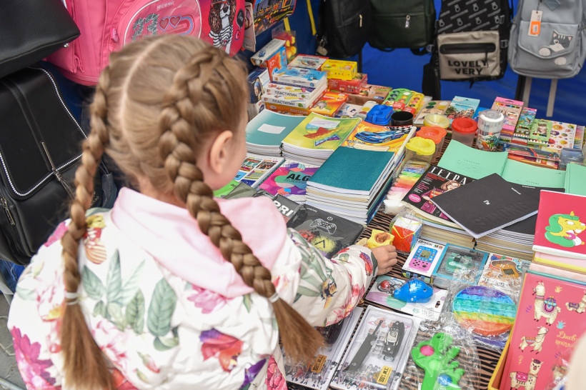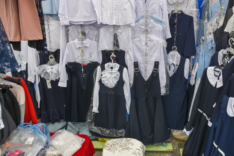 Основная часть покупателей на школьных ярмарках областного центра — люди из городов и поселков региона. Благовещенские родители приходят сюда реже, отмечают продавцы. Первый и самый затратный пункт в школьном списке мам и пап — форма.