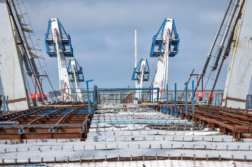 План строительства был выстроен таким образом, чтобы построить мост не в 2024 году, как было предусмотрено проектом, а максимально сократить сроки и завершить стройку к концу 2023-го. И подрядчик с этой задачей справляется. При монтаже пролетных строений применялся метод продольной надвижки с использованием гидравлического оборудования. За полтора года мостостроители провели с двух берегов 14 этапов надвижки: 8 — с левого и 6 — с правого берега. Сейчас пролетное строение общим весом 8 500 тонн и длиной 1 750 метров смонтировано на 20 опорах. И хотя мост через Зею называют близнецом моста через Амур, строители уверяют: каждый переход уникален.