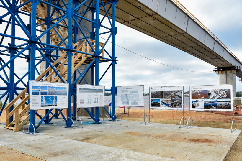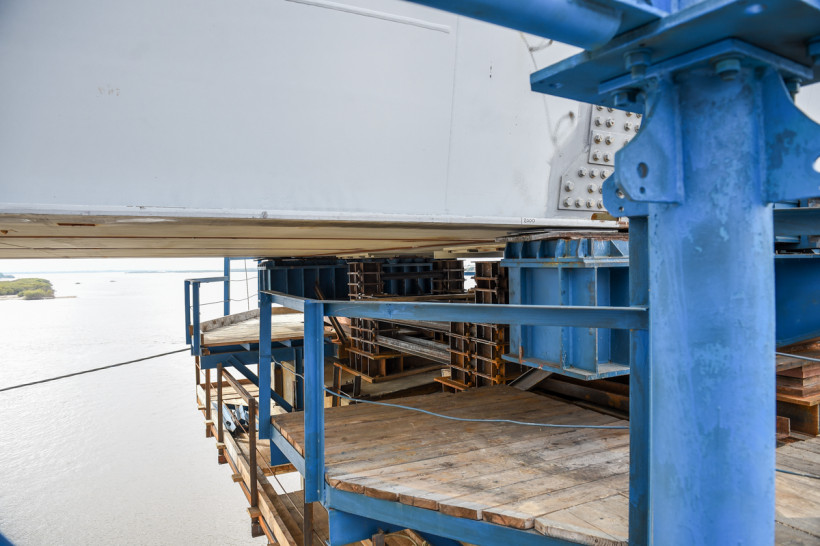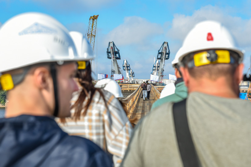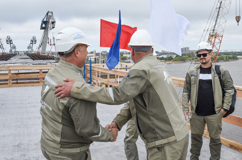 Последний этап надвижки русловой части проходил на одиннадцатой опоре мостового перехода. После сигнала о готовности всех подразделений прозвучала команда: «Приступить к надвижке!» Во время процесса Эдуард Давыдов подробно объяснял главе региона технические моменты, после окончания надвижки над мостом раздались аплодисменты.