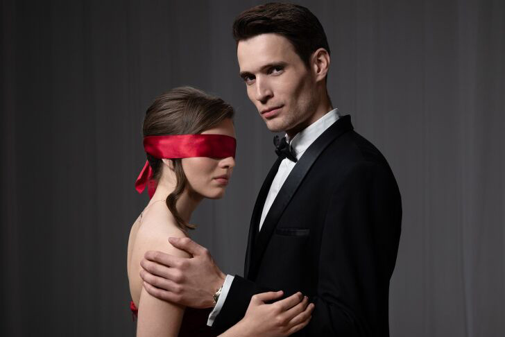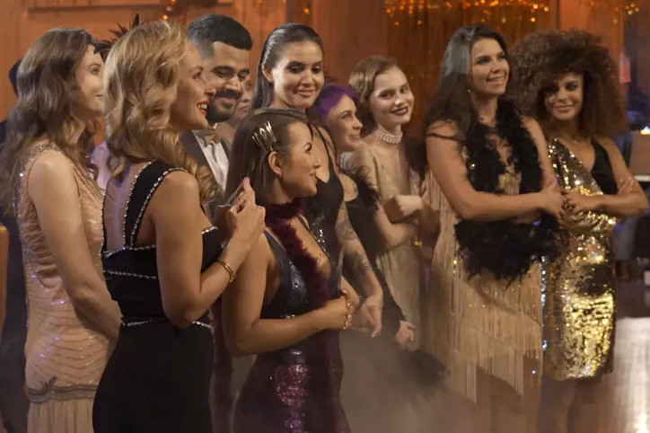 Следующее испытание — бал, где всем девушкам закрыли глаза чёрными повязками.