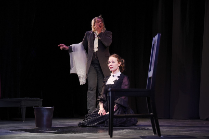 Спектакль длится три часа, и можно сказать, что он — для подготовленного зрителя. Иначе можно не выдержать эти три часа черноты, порой очень ощутимо передающей скуку провинциальной жизни, или не понять вдруг появляющиеся комические сцены. Но ведь злой на жизнь Флобер так и задумывал. Он совсем не боготворил свою героиню, а тонко и зло иронизировал над общим положением вещей и над ее вкусами тоже. Дешевые любовные романы и желание быть «как в Париже» — далеко не самый лучший образец к подражанию. Этот подтекст видно в спектакле не сразу, но он придает постановке глубину.
