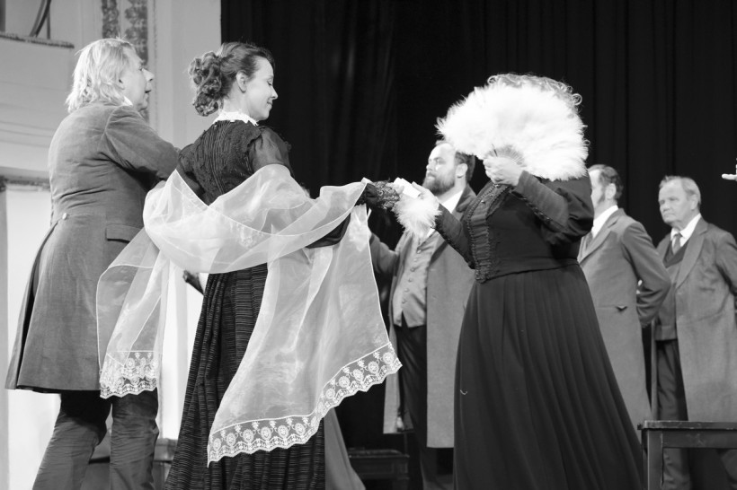 Спектакль длится три часа, и можно сказать, что он — для подготовленного зрителя. Иначе можно не выдержать эти три часа черноты, порой очень ощутимо передающей скуку провинциальной жизни.