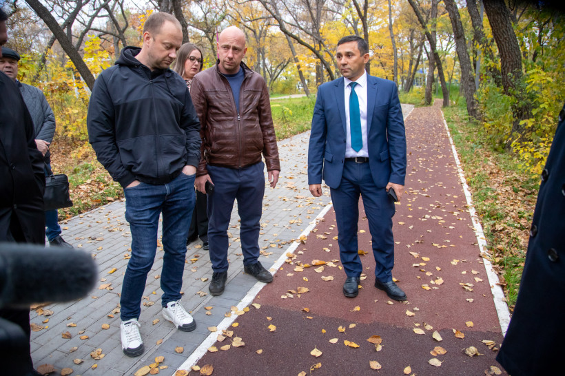 В рамках выездного совещания мэр отметил, что в парке проделан достаточно большой объем работ. Но есть отставание на 2—4 недели по разным объектам.