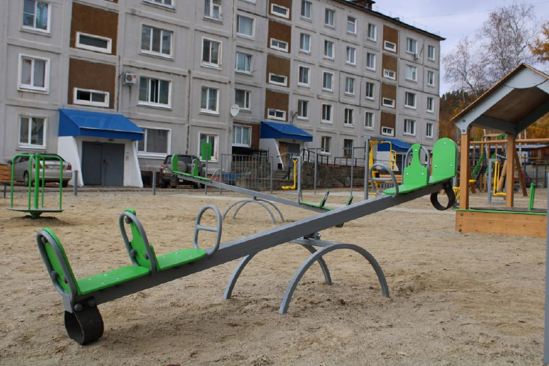 По желанию жителей на 800 квадратах смонтированы детские игровые и спортивные площадки с горками и качелями, шведской стенкой, рукоходом, турником с гимнастическими кольцами, тренажерами для пресса. Учли и пожелания хозяек: во дворе установлены сушилки для белья и стойки для выбивки ковров, скамейки, урны, а также здесь обновили освещение.