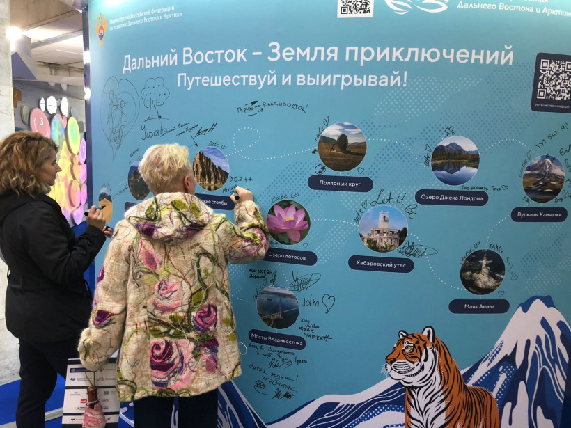 — «Путешествуй на Дальний» и рассказывает о самых популярных туристических локациях и маршрутах на Дальнем Востоке. Кроме того, в этой зоне установлена специальная поверхность с изображением достопримечательностей Дальнего Востока, на которой студентам предлагается маркером отметить те места, где они уже бывали или куда только планируют отправиться в путешествие.