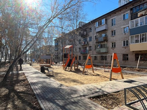 В Циолковском по программе «1000 дворов» преобразились две дворовые территории. Во дворах космограда установили игровые комплексы, лавочки, освещение и тротуарную плитку.
