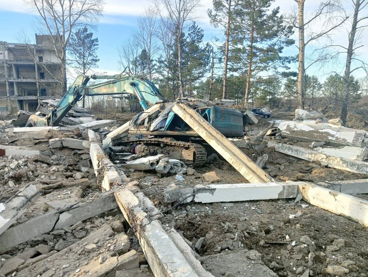 Днем в субботу, 15 октября в Райчихинске при демонтаже здания на территории бывшей воинской части погиб 38-летний рабочий. На экскаватор, в котором он находился, упала плита.