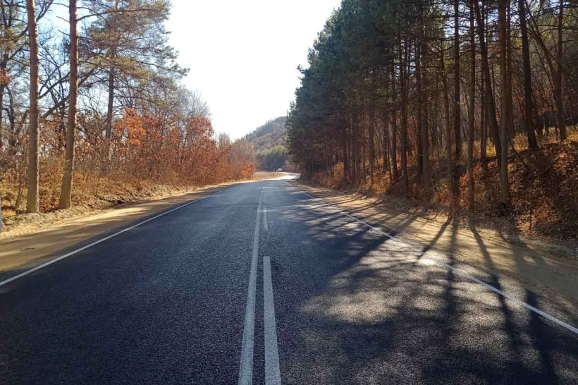 Дорожники демонтировали старое покрытие, отсыпали щебнем основание дороги, уложили два слоя асфальтобетона, укрепили обочины и нанесли разметку. Осталось только установить новые дорожные знаки и барьерное ограждение.