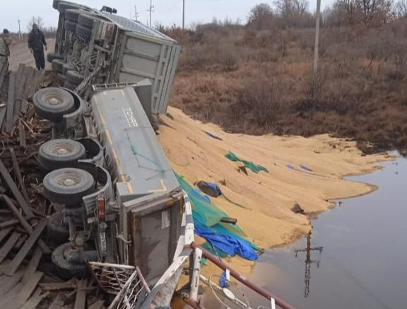 Грузовик с соей рухнул вместе с мостом в Архаринском районе