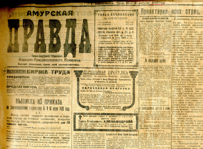 Через газеты в начале прошлого века местные чиновники оповещали население о вакансиях, аукционах и своих требованиях: «Городское управление приглашает лиц, желающих принять на себя поставку в текущем году дров для города в количестве 4000 сажень», а Благовещенская телефонная сеть покорнейше просила граждан, «не внесших причитающейся абонентской платы за 2-е полугодие, безотлагательно озаботиться взносом таковой».