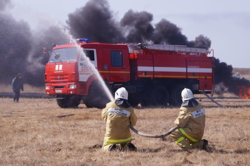 Амурские пожарные пять раз за сутки тушили сухую траву
