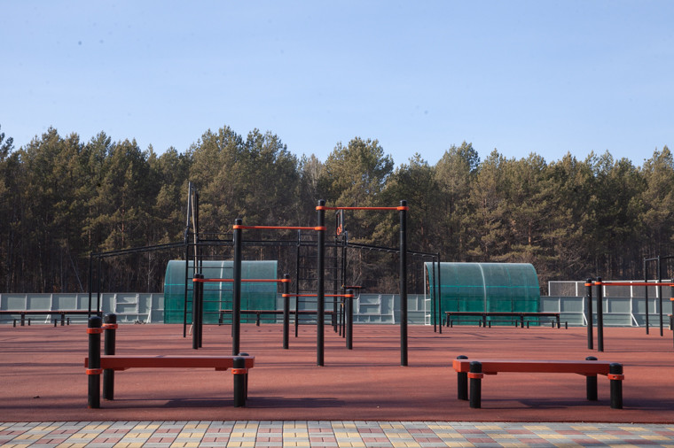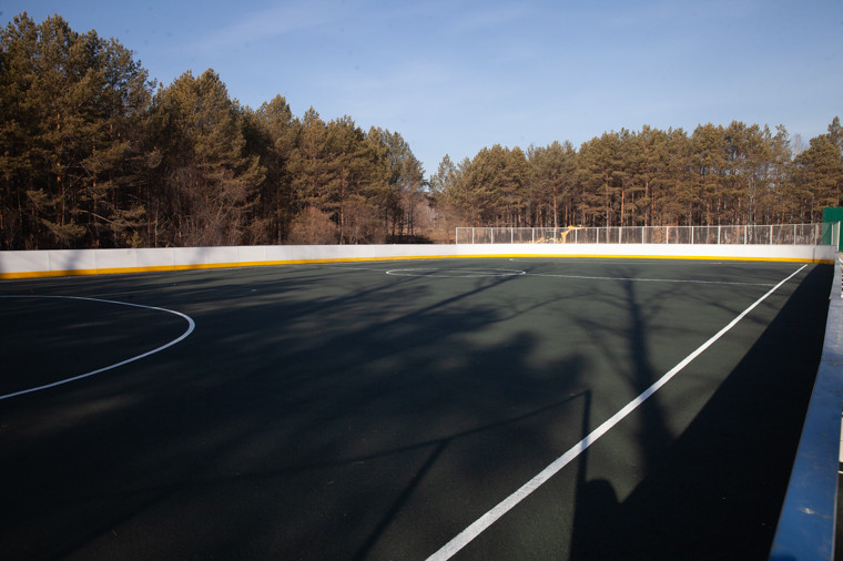 Сейчас здесь готова хоккейная площадка, которая летом будет полем для мини-футбола. Центр уже получил форму и оборудование для занятий хоккеем и лазертагом. Рядом с хоккейной площадкой расположен гимнастический спортивный городок, площадки для рукопашного боя, настольного тенниса, баскетбола и волейбола. Все — современные с искусственным покрытием.