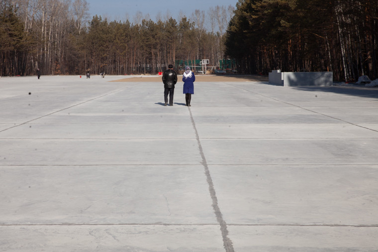 Строевой плац находится на своем историческом месте. Он готов — полностью забетонирован, здесь есть трибуна (как и было в училище), а также площадка под технику. На плацу еще должны появиться разметка и зеркала, иначе строевая подготовка невозможна. «Обязательно нужно смотреть на себя, а как иначе понять, что ты делаешь все верно? Строевая подготовка многое дает: это осанка, поднятый подбородок, меняется даже взгляд человека», — отмечает Сергей Степанович.