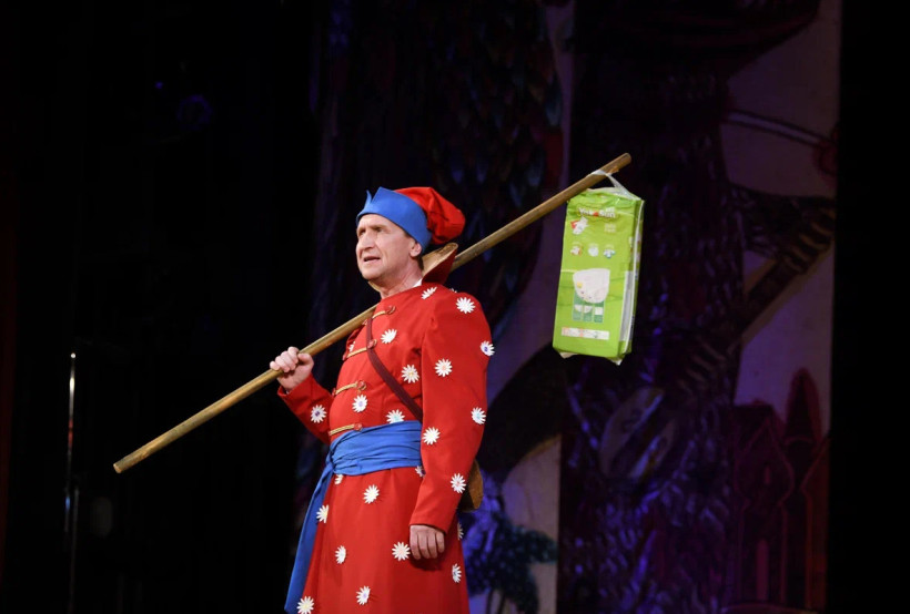 Пьеса, написанная в 1985 году, воспринималась тогда, и часто воспринимается и по сей день, как внутренняя сатира на ту самую эпоху застоя. Остросоциальный, пусть даже и хороший текст через столько лет рискует потерять актуальность, стать непонятным или устаревшим. Некоторые экранизации «Сказа» этим и грешат, если честно. Но Агеев удачно смешал скоморошину, балаганность и современные реалии. Культурно-исторический аспект зазвучал уже немного по-иному. Получилось смешно и понятно, а органично вплетенные в театрализацию отсылки к героям мульфильмов, эстрадным шлягерам, селебрити и гаджетам, казалось бы, абсурдным на фоне лубочных декораций, актуализируют пьесу, одновременно сбивая градус пафоса.