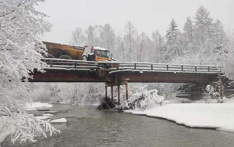 Мост через реку Малый Караурак в Селемджинском районе перекрыла тяжелая техника Албынского рудника. Вес грузовика превысил ограничение, из-за чего был поврежден настил перехода.