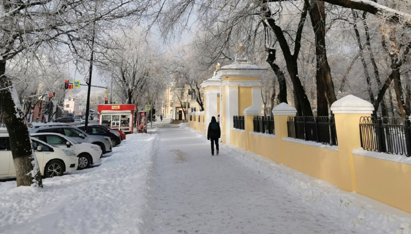 Днем -7.. -12 градусов, местами по северу -14.. -19, сообщает амурский Гидрометцентр. В Благовещенске переменная облачность, без осадков. Ветер западный 5—10 м/с. Днем на улице до 9 градусов ниже нуля.