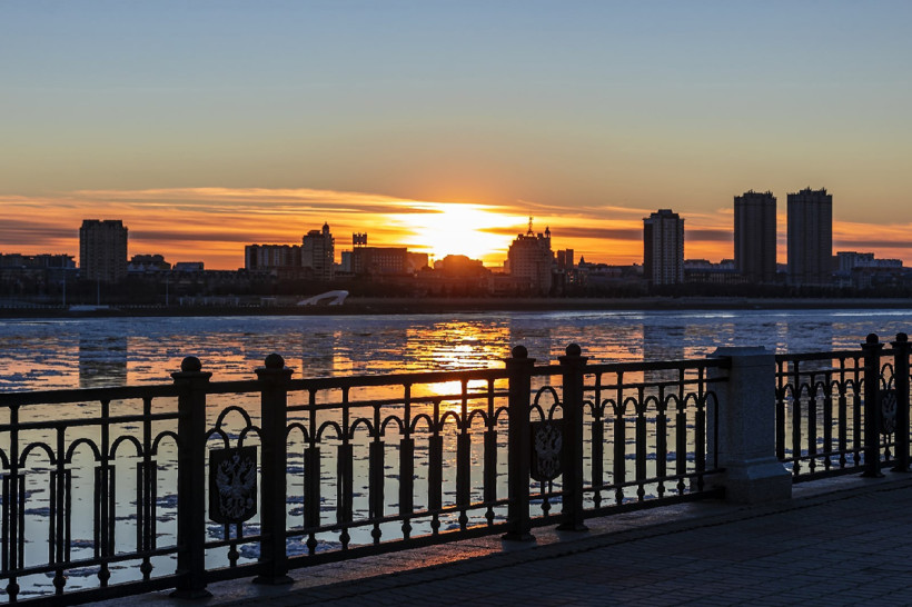 Столица Амурской области — единственный административный центр России, расположенный на самой границе. Российский Благовещенск и китайский Хэйхэ разделяют всего 800 метров реки Амур. Другие интересные факты о Благовещенске читайте здесь.