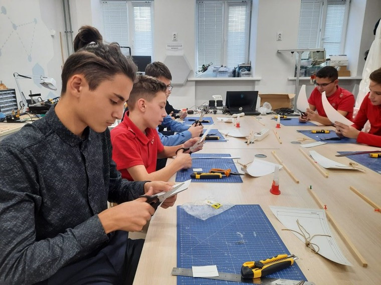 Другая часть группы занималась в «Космоквантуме». С наставником Андреем Пономаревым дети собрали резиномоторный вертолет «Муха».