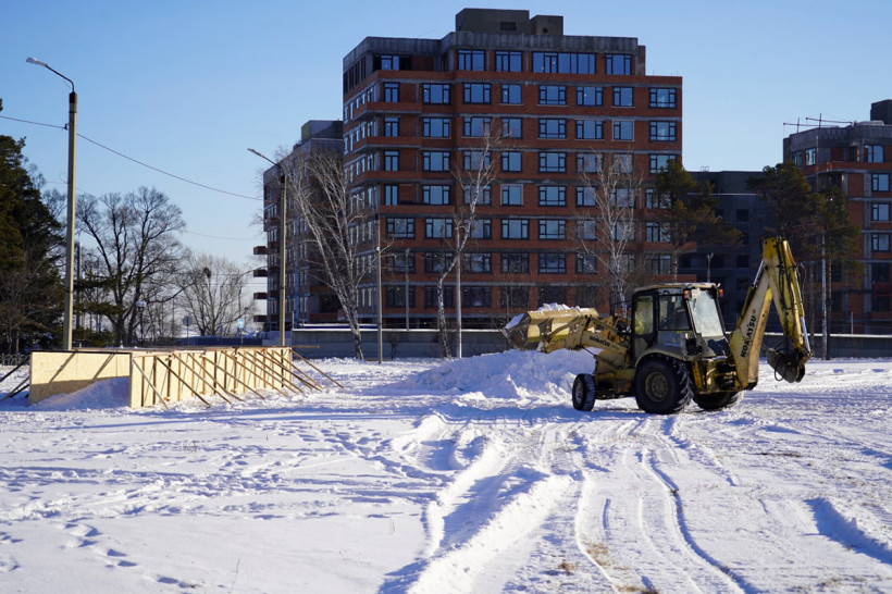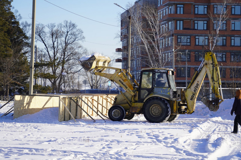 На площади имени Лазо в Свободном началось строительство снежного городка. В этом году все фигуры в нем посвятили Санкт-Петербургу. Рабочие устанавливают главную новогоднюю ель, завозят ледяные блоки, из которых мастера вырежут скульптуры.