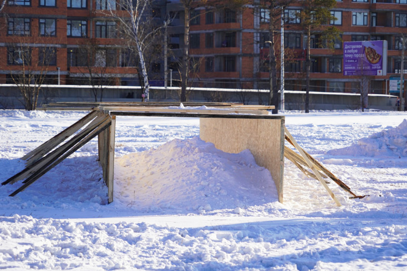 Подрядчик приступил к работе в начале этой недели. Помимо льда, на площади в коробки собирают снег. Затем из него также сделают фигуры.