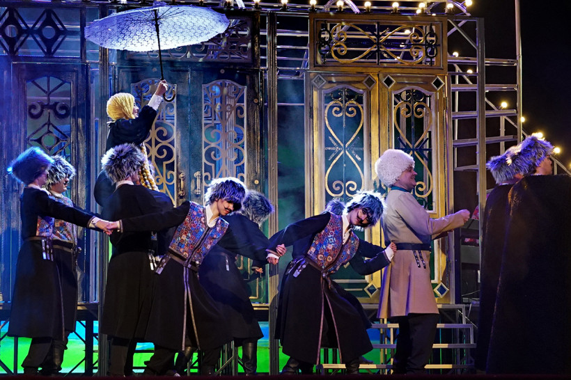 Часть действий на сцене похожа на конкурсы на свадьбе, а музыкальное оформление спектакля — не народные одни только национальные мелодии, а на две трети — ресторанный шансон.