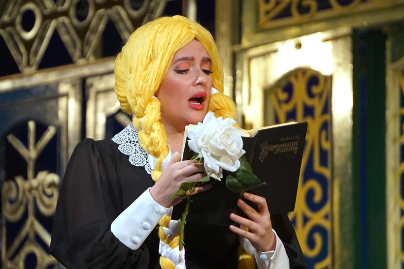Элементов буффонады в спектакле достаточно. Одни косы Соны чего стоят! Пряжи, из которой они сделаны, опытной вязальщице хватило бы на джемпер!