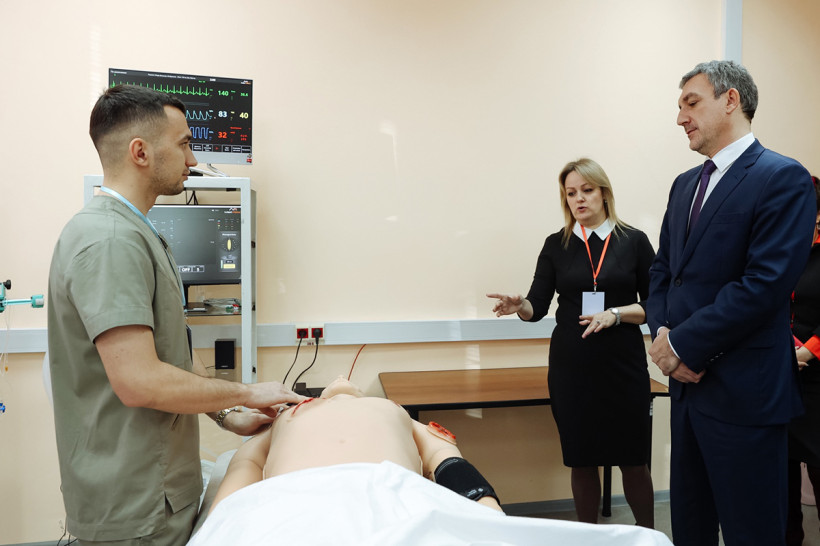 Как действует врач при осколочном ранении, показали главе региона на станции симуляции. Здесь, используя роботов, медики обучаются специальной подготовке по экстренной или первой помощи. Проходят подготовку медицинские работники и волонтеры для специальной военной операции. В сентябре — ноябре сотрудники центра обучили около 50 специалистов силовых структур и 22 врача для оказания медицинской помощи в условиях СВО, а также 76 инструкторов и курсантов первой помощи.