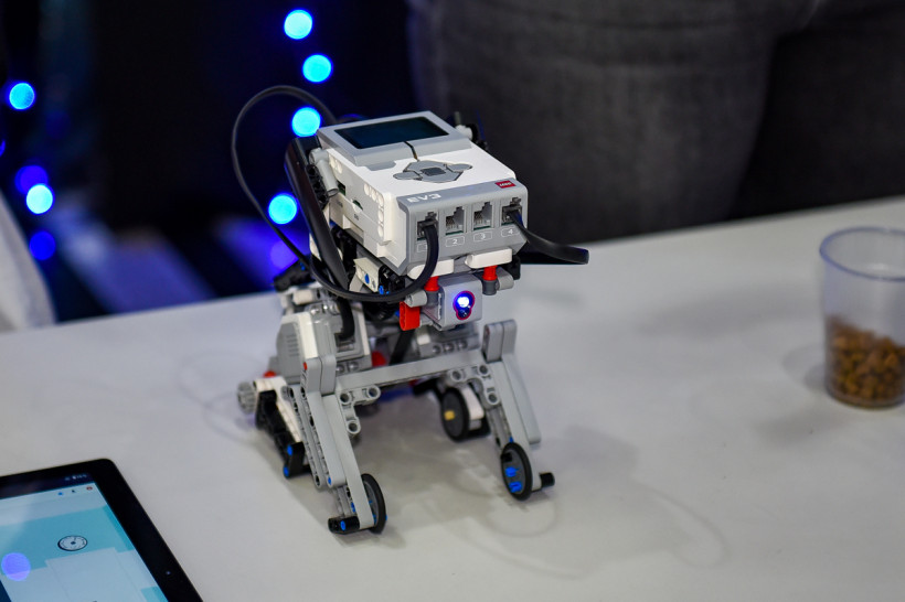 «Это — автоматическая кормушка для домашних животных», — преподаватель центра цифрового образования детей «IT-куб» Диана Матюхина показывает на небольшую установку, собранную из Lego Mindstorms EV3. В левой части конструкции — небольшая педаль. Наставник легко касается ее рукой, и в подставленную тарелку падает немного корма.