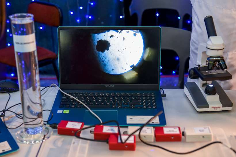 А еще здесь ребята выясняют, насколько вредны гаджеты. С помощью цифровой лаборатории они изучают уровень магнитного излучения.