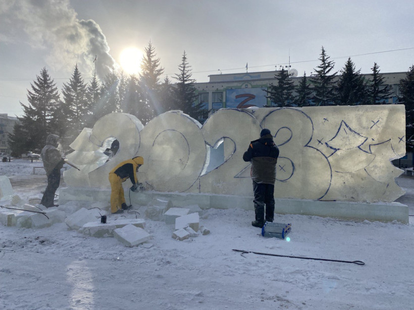 — Доставлено 35 кубометров льда, — рассказала начальник службы по обеспечению ДОМС Татьяна Басос. — Для изготовления 7 фигур, трех горок, ограждения и композиции из цифр потребуется 320 кубометров льда.