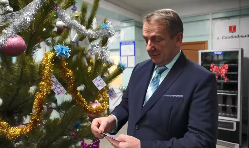 Глава города станет Дедом Морозом для пяти детейК общероссийской акции «Елка желаний» присоединился мэр Свободного Владимир Константинов. С новогоднего дерева, которое ранее установили в фойе городской администрации, он снял письма с пожеланиями ребят из многодетных семей. Градоначальник подарит радость юным свободненцам и жителям поселка Советский.