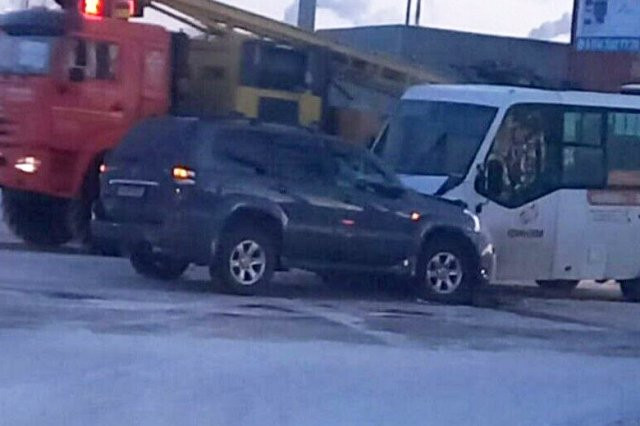 ДТП произошло в понедельник в восемь часов утра на перекрестке 50-летия Октября и Кольцевой. Столкнулись автобус ПАЗ, маршрутка и Toyota Land Cruiser Prado. Предварительно, ПАЗ не уступил дорогу внедорожнику, джип выехал на встречную полосу и врезался в маршрутку. 17-летняя девушка-пассажир автобуса травмировала руку.