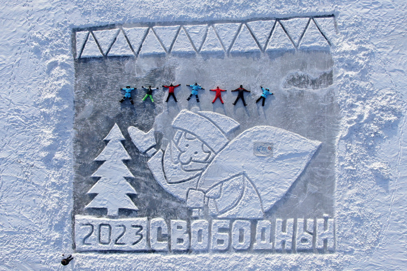 В Свободном на озере Большанка поселился огромный Дед Мороз. Его смело можно назвать общероссийским — ведь в создании ледовой открытки принимали участие не только амурчане, но и красноярцы, сочинцы, тоболяки, волгоградцы и екатеринбуржцы. Все они приехали в Амурскую область на стройку газохимического комплекса и, конечно, прониклись историей ледового художника — деда Валерия.