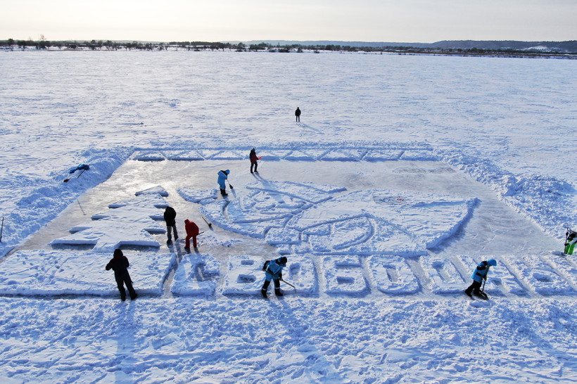 В создании ледовой открытки принимали участие не только амурчане, но и красноярцы, сочинцы, тоболяки, волгоградцы и екатеринбуржцы. Фото: Амурский ГХК
