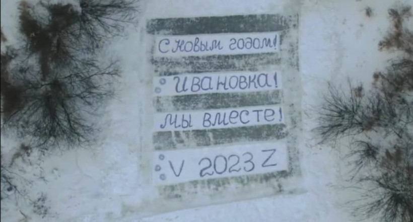 Слава богу, говорят супруги, в этот раз все обошлось без жертв. И фотографии, и видеоролик получилось сделать. На прямоугольном «полотне» размером примерно 20 на 22 метра супруги синей краской написали: «С Новым годом! Ивановка! Мы вместе! V 2023 Z».