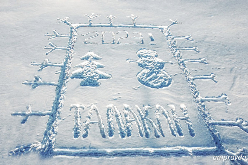 Свою зимнюю открытку старшеклассники Талаканской средней образовательной школы № 5 вытоптали на снегу. Ученики 10 «А» и 11 «А» классов под руководством учителя физической культуры и ОБЖ Светланы Ефимовой решили совместить приятное с полезным — сделать сотворить подарок землякам и поучаствовать в конкурсе «Амурской правды». Около часа на морозе, сугробы до колена, ресницы в инее, замершие носы — и картина готова.