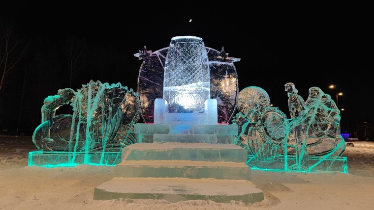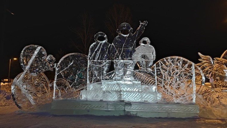 Космос — ближе, чем кажется. В этом году город Циолковский, что возле космодрома Восточный, к главному празднику страны украсили ледяными фигурами космонавтов, ракет и героев известного мультфильма «Тайна третьей планеты». Космическая тематика ледового городка очень понравилась и взрослым, и детям.