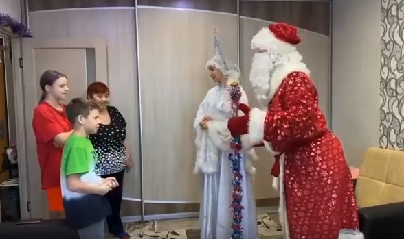 Дед Мороз и Снегурочка приехали к ребятам в город президентского внимания и вручили детям умную колонку «Маруся», волейбольный мяч, два сладких подарка и поздравительную открытку от главы города, сообщает пресс-служба администрации Белогорска.