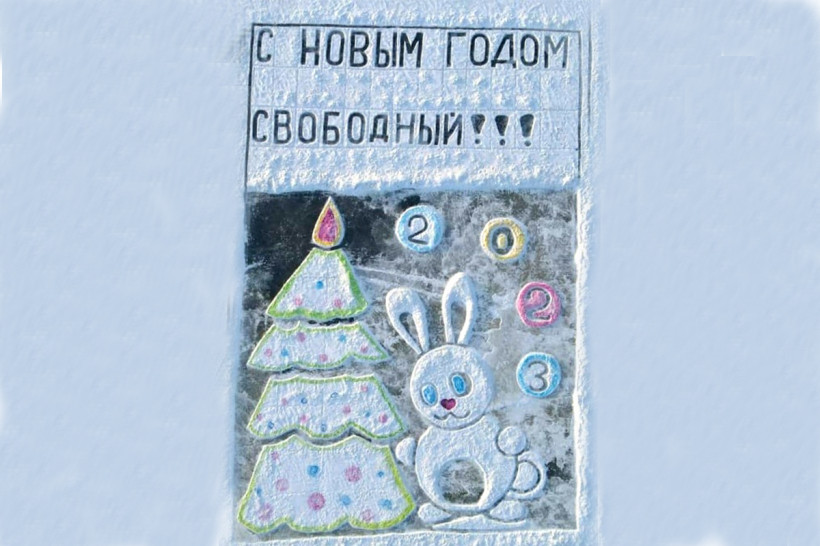 Город президентского внимания оказался самым богатым на число ледовых поздравлений. Участие в фестивале АП «Чудеса на льду» принимают сразу три открытки из Свободного. «Амурская правда» уже писала о том, как создавали свою ледовую картину сотрудники Амурского газохимического комплекса. Их гигантский Дед Мороз поселился на озере Большанка. Еще одну свободненскую открытку — зайчика под елкой на озере Шестянка — нарисовала семья Павленко-Рахмановых. Недавно милый символ наступающего года появился и на запруде, в районе объездной дороги Благовещенск — Свободный.