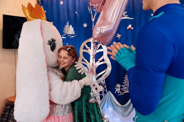 В письме, которое Диана оставила на «Елке желаний», девочка попросила, чтобы в день рождения ее поздравил большой заяц. Так и случилось. Шары и торт, как она и загадала, ей подарила ростовая кукла.